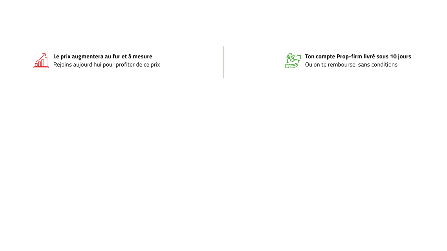 Je ne recommande que ce que j’ai MOI-MEME validé. Cette Prop-firm paie ses traders, respecte ses conditions, et propose un support de qualité. Vous n'avez pas à vous soucier des arnaques ou des pièges cachés : tout est clair dès le départ.